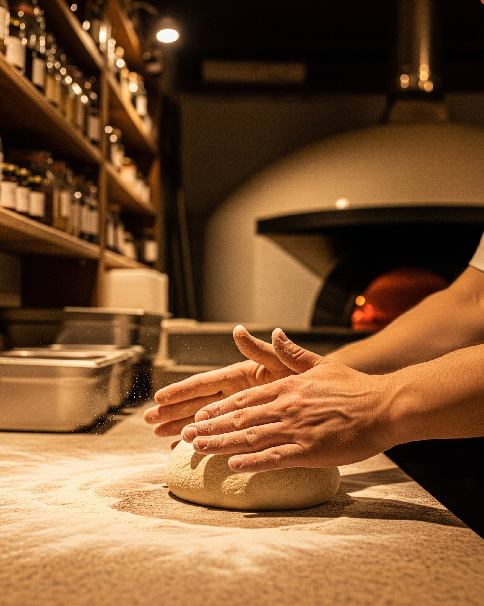 Todo comenzó hace generaciones en el seno de nuestra familia donde la cocina era el epicentro de la vida familiar. Para nosotros, la pizza no es solo comida; es un lenguaje, una forma de expresar amor y compartir alegría. Amasábamos cada día guiados por la sensación de la harina bajo nuestros dedos, el sonido del agua al mezclarse con la harina y el dulce aroma que emerge de la masa al fermentar lentamente. Nuestras masas de pizza eran saboreadas por la familia y amigos quienes disfrutaban de su ligereza, sabor profundo y esa corteza crujiente por fuera y aireada por dentro.